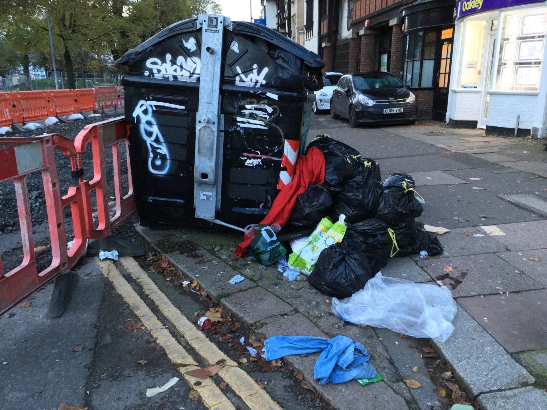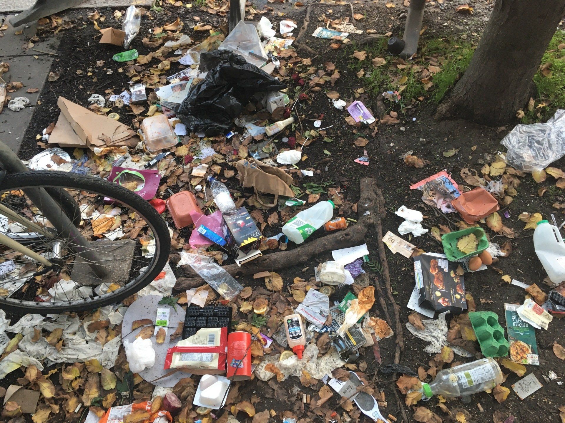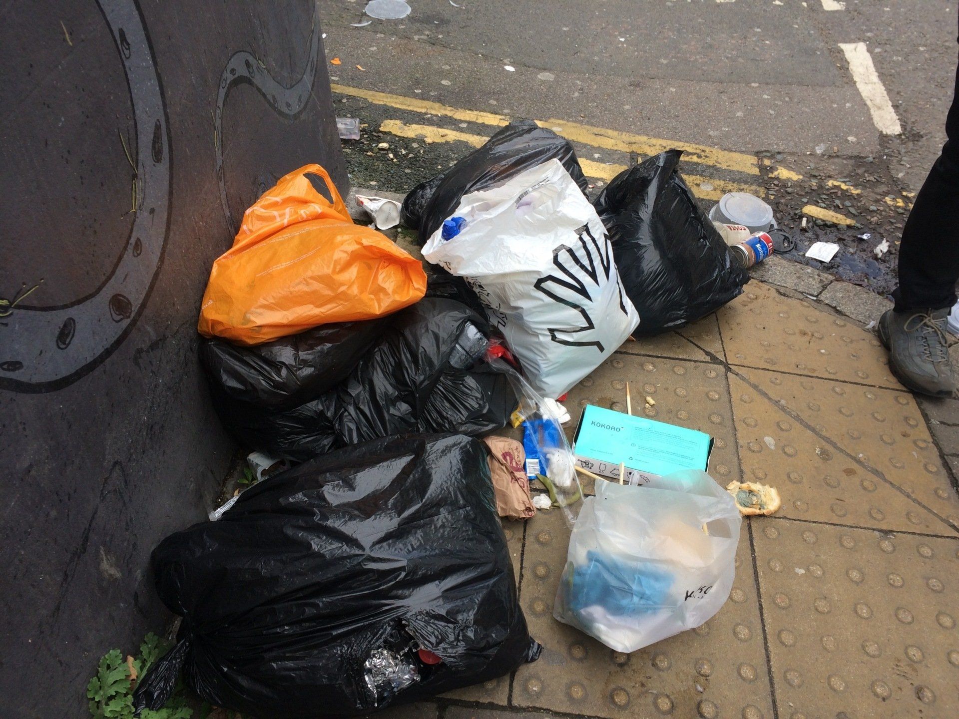 A bag of rubbish just chucked in a corner no effort to get rid of it properly, Oh dear.