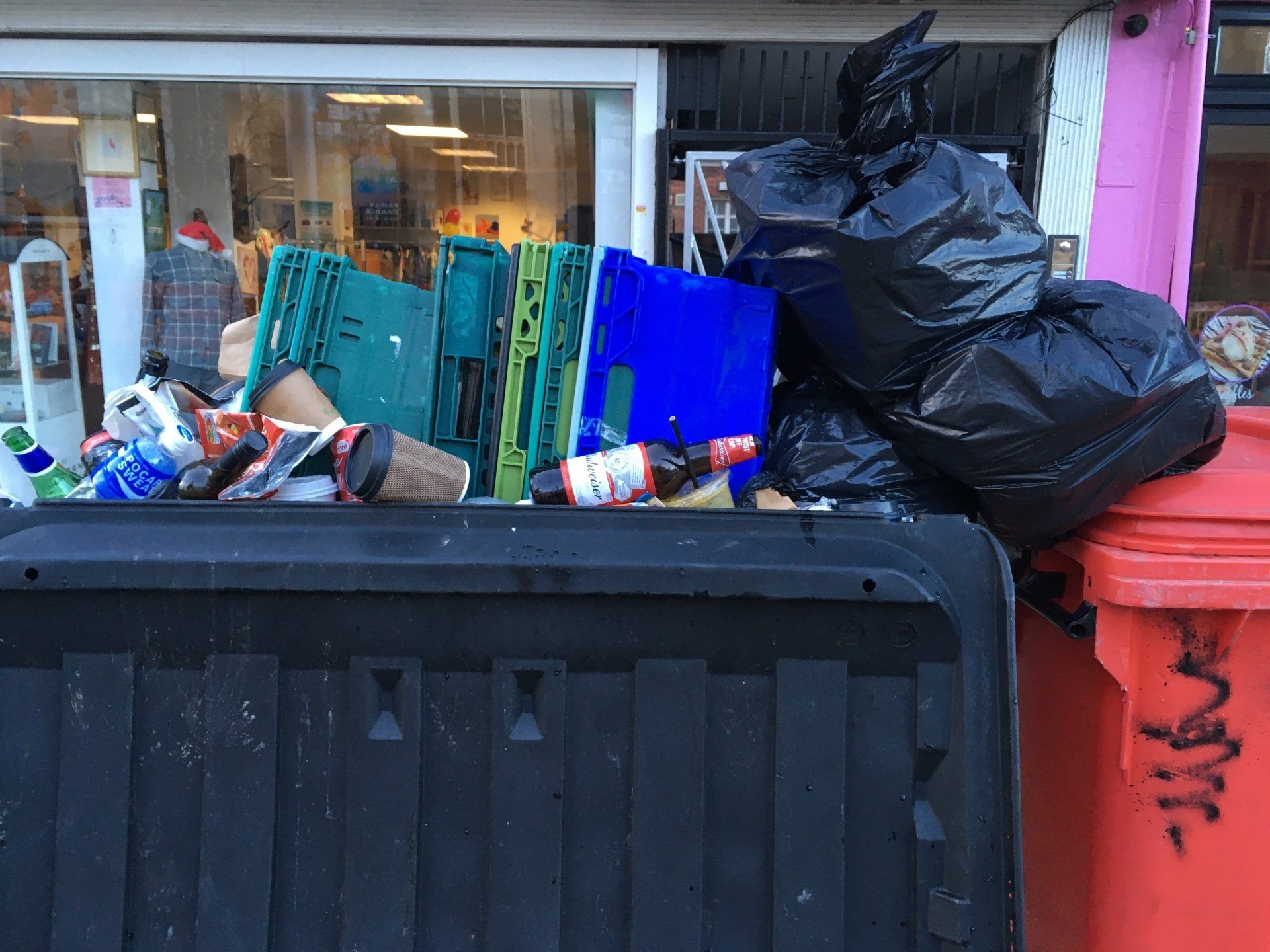 Mind you foxes play a part as well in ripping up the rubbish bags we leave lying around. Its there in the middle of the picture, well mainly you can just see its eyes.